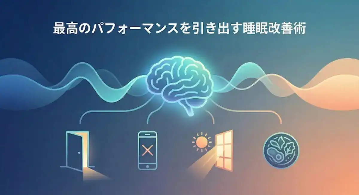 睡眠改善は特別な道具よりも、体内時計を整える朝の光、就寝前のスマホと刺激の調整、寝室環境の見直し、食事とカフェインの管理、考えごとの整理から始めるのが近道です。小さな習慣を一つずつ整えることで、眠りの質と日中のパフォーマンスが変わっていきます。